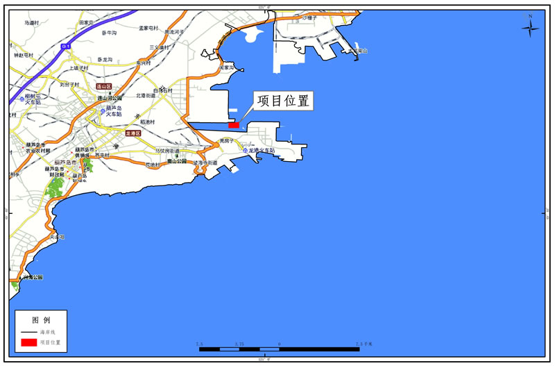 本項目位于葫蘆島港北港港區(qū)南部作業(yè)區(qū),也即北龍港現有港區(qū)突堤南側。