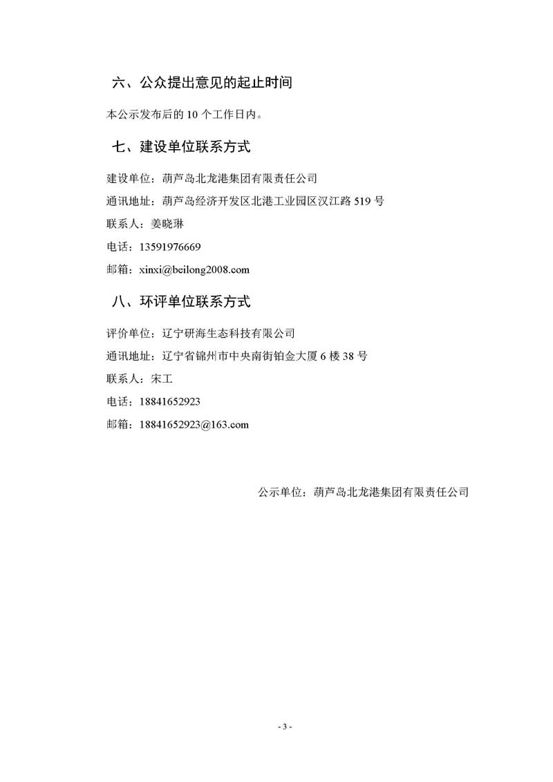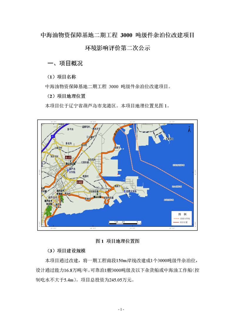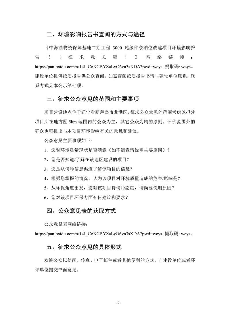 中海油物資保障基地二期工程3000噸級件雜泊位改建項目 環(huán)境影響評價第二次公示